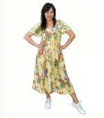Rękawki motylki powiewają przy każdym kroku. Delikatne wycięcie na plecach odsłania dokładnie tyle, ile trzeba. Marszczenia nadają sukience lekkości, a wiązanie w talii pozwala dopasować ją do siebie – tak jak lubisz najbardziej.