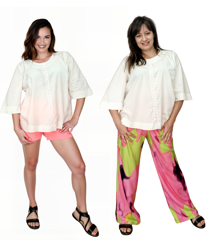 W zestawie znajdziesz wszystko, czego potrzebujesz, by uszyć bluzkę PETRA, krok po kroku – nawet jeśli dopiero zaczynasz przygodę z szyciem.